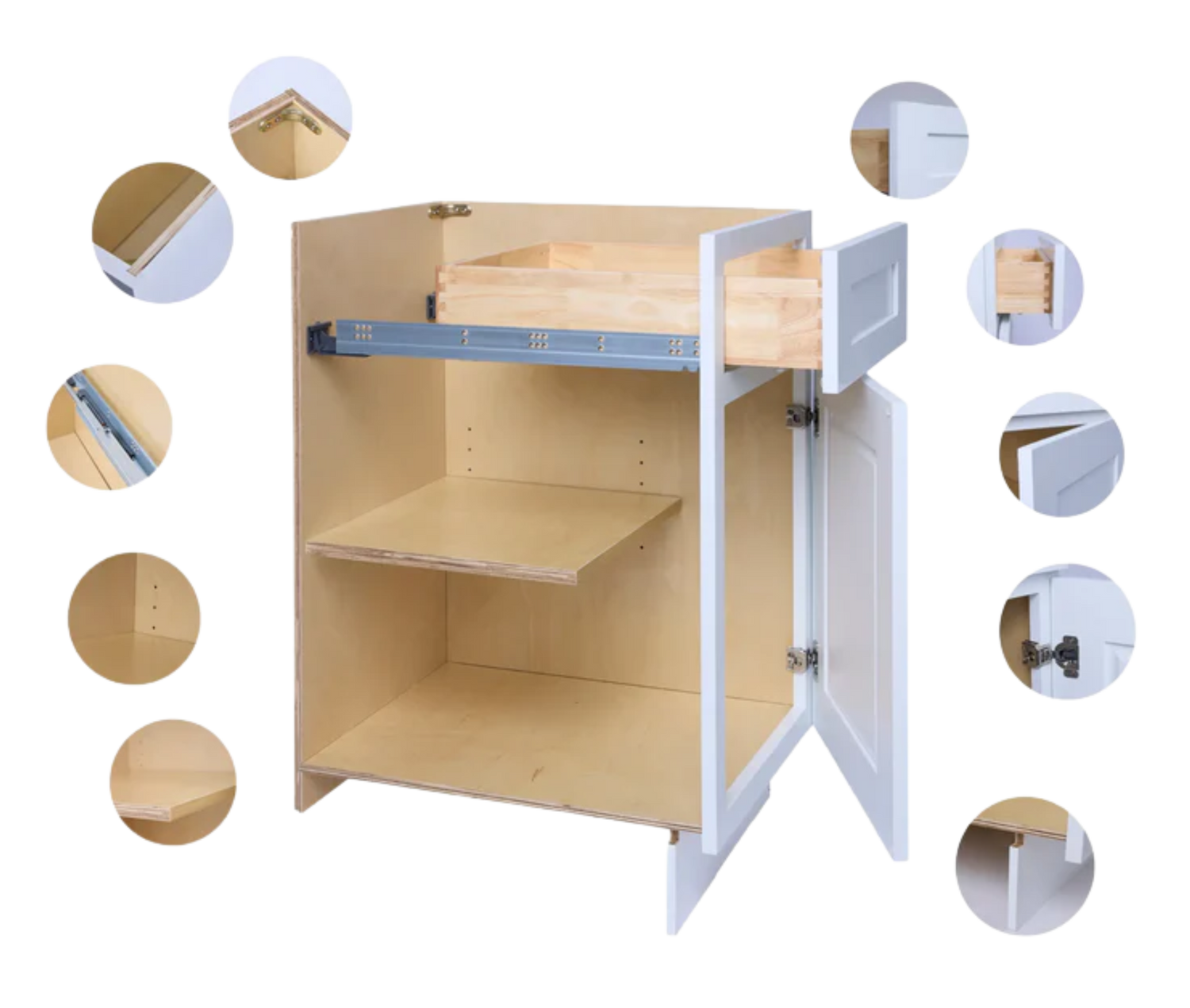 - Metal bracket reinforcement for base cabinetry