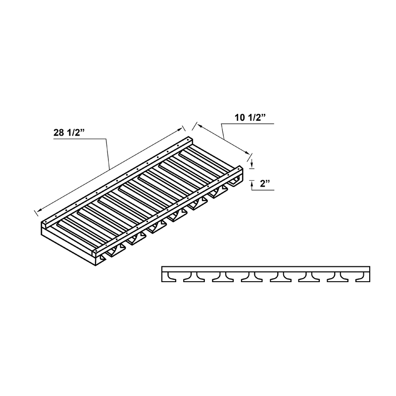 28 1/2"W x 10 1/2"H x 2"D